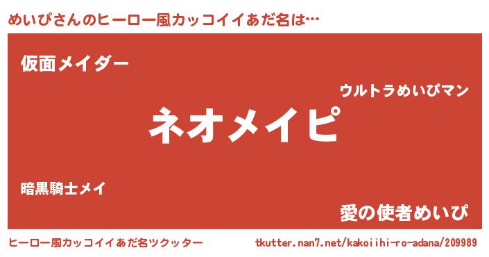 | 女子向けラノベタイトル風あだ名 | 『異世界で失敗しない100のめいぴ』 |