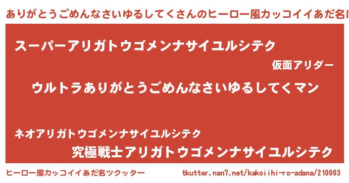 | 男性向けラノベタイトル風あだ名 | 『ありがとうごめんなさいゆるしてくに滅ぼされるだけの簡単なお仕事です』 |