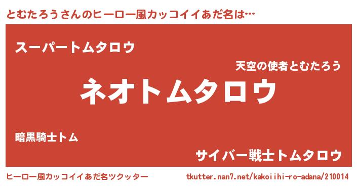 | 男性向けラノベタイトル風あだ名 | 『誰もが恐れるあのとむたろうが、ぼくの専属メイドになるようです。』 |