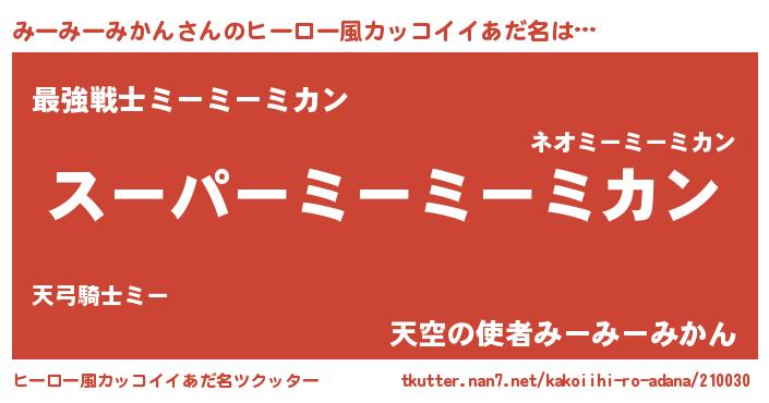 | 男性向けラノベタイトル風あだ名 | 『ミーミーミカンアートオンライン』 |