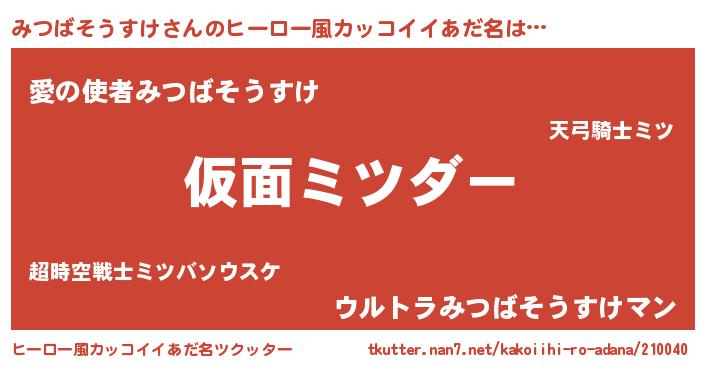 | 男性向けラノベタイトル風あだ名 | 『みつばそうすけに滅ぼされるだけの簡単なお仕事です』 |