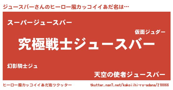 | 女子向けラノベタイトル風あだ名 | 『ジュースバーストレイドッグス』 |