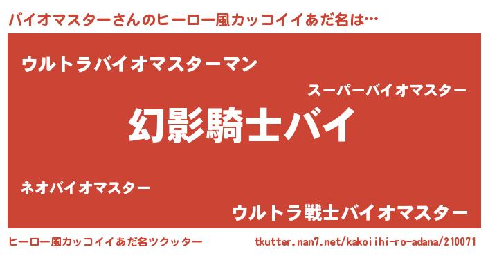 | 意味不明あだ名 | 『とにかく怪しいバイオマスター』 |