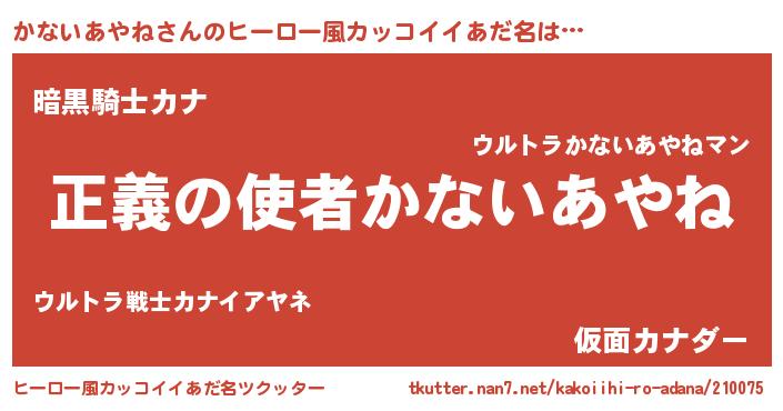 | 女子向けラノベタイトル風あだ名 | 『かないあやね夫妻のなれそめ』 |