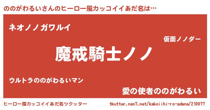 | 男性向けラノベタイトル風あだ名 | 『ダンジョンにののがわるいを求めるのは間違っているだろうか』 |