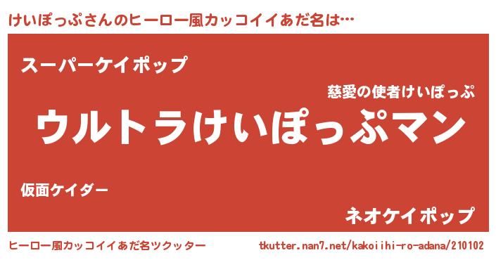 | 意味不明あだ名 | 『けいぽっぷフォーエバー』 |