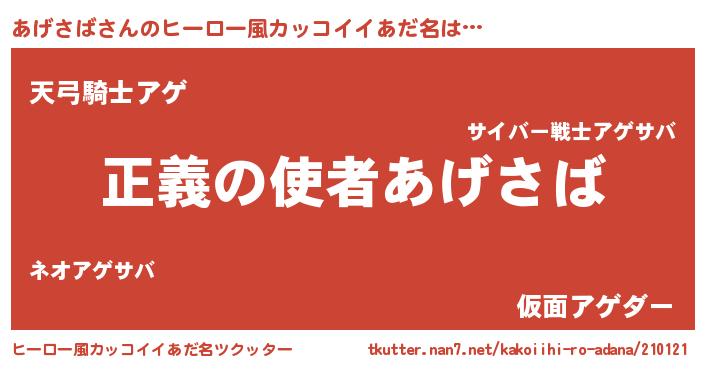 | 男性向けラノベタイトル風あだ名 | 『はたらくあげさばさま!』 |