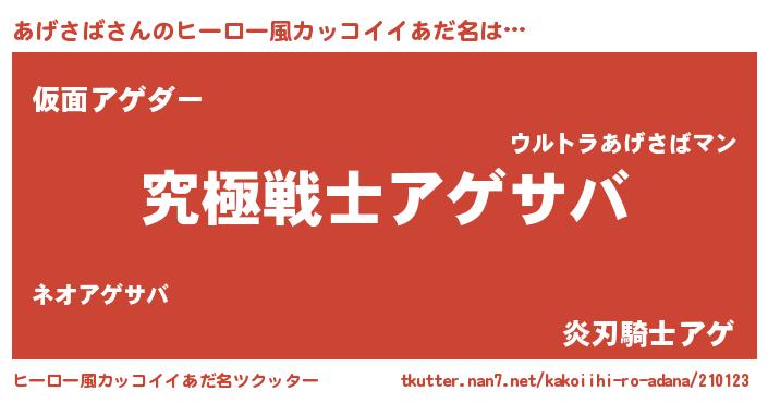 | 意味不明あだ名 | 『自称あげさば』『あげさばフォーエバー』 |