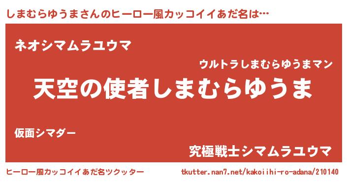 | 男性向けラノベタイトル風あだ名 | 『ノーゲーム・ノーシマムラユウマ』 |