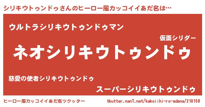 | 男性向けラノベタイトル風あだ名 | 『シリキウトゥンドゥという概念が存在しない退屈な世界 』 |