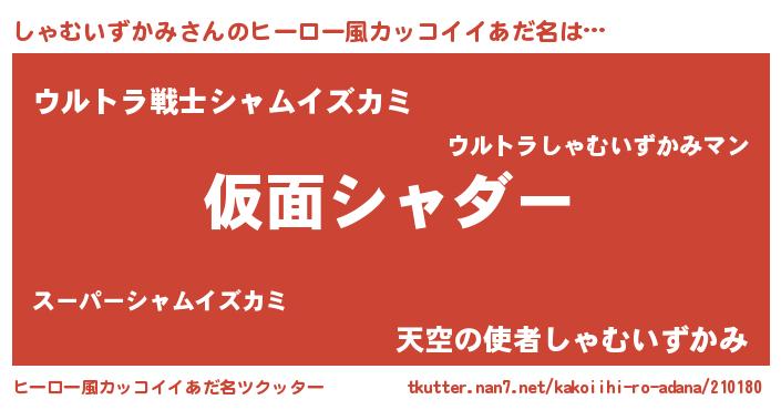 | 意味不明あだ名 | 『住所不定無職しゃむいずかみ(77歳)』 |
