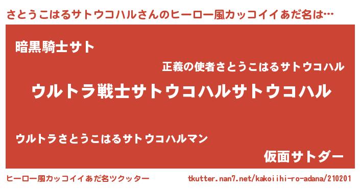 | 欧米人風あだ名 | 『トリンドルさとうこはるサトウコハル』 |
