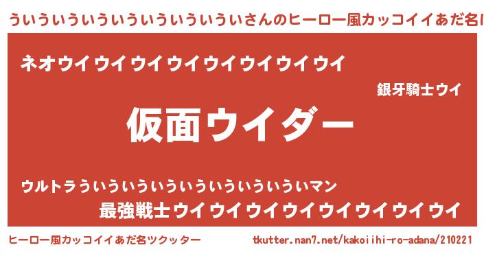 | 男性向けラノベタイトル風あだ名 | 『この素晴らしい世界にういういういういういういういういを!』 |
