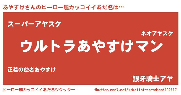 | 意味不明あだ名 | 『あやすけフォーエバー』 |