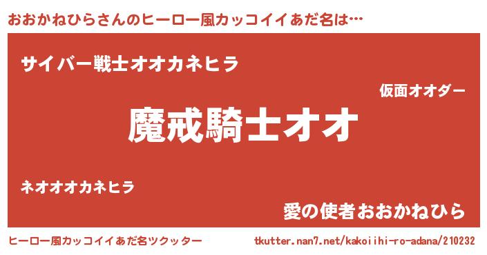 | 意味不明あだ名 | 『とにかく怪しいおおかねひら』 |