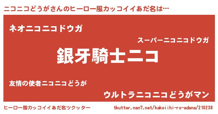 | ポケモン風あだ名 | 『ヒニコニコドウガ』『ゼニニコ』 |