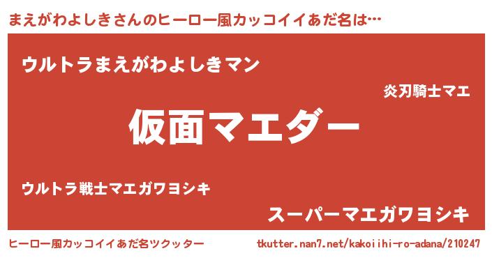 | 意味不明あだ名 | 『住所不定無職まえがわよしき(91歳)』 |
