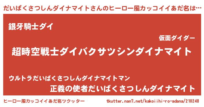 | 恥ずかしいあだ名 | 『ダイバクサツシンダイナマイトデラックス』 |