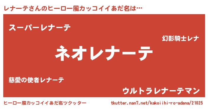 | 意味不明あだ名 | 『永久保存レナーテ』『ペロリンレナーテ』 |