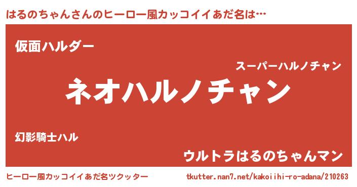 | 男性向けラノベタイトル風あだ名 | 『はるのちゃんに滅ぼされるだけの簡単なお仕事です』 |