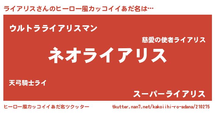 | ヘコむあだ名 | 『ライアリス(遠い目)』『酢こんぶ』 |