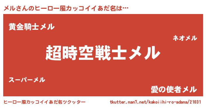 | 男性向けラノベタイトル風あだ名 | 『緋弾のメル』『はたらくメルさま!』 |