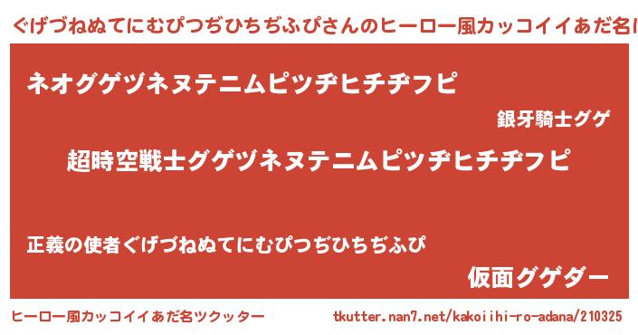 | ヘコむあだ名 | 『ぐげづねぬてにむぴつぢひちぢふぴ(笑)』 |