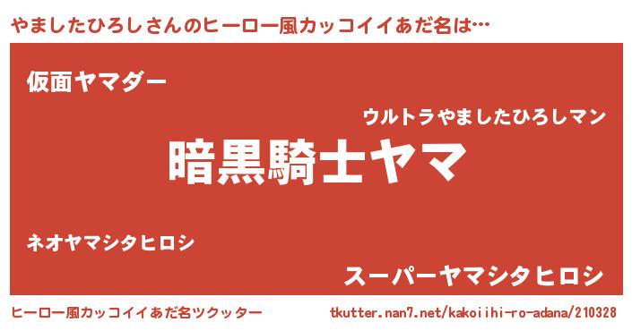 | 男性向けラノベタイトル風あだ名 | 『はたらくやましたひろしさま!』 |