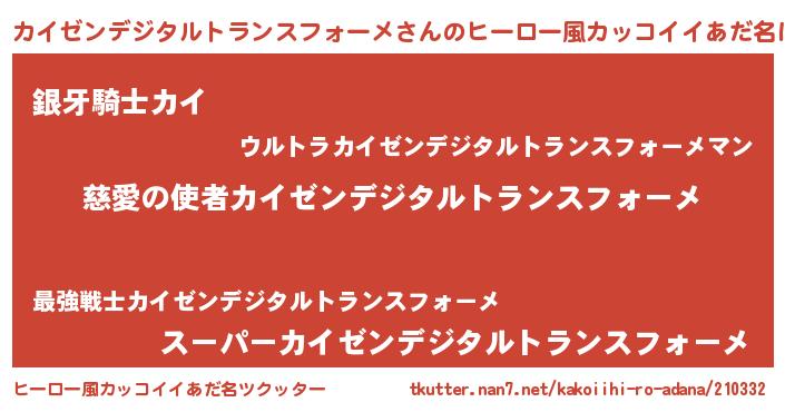 | 男性向けラノベタイトル風あだ名 | 『ノーゲーム・ノーカイゼンデジタルトランスフォーメ』 |