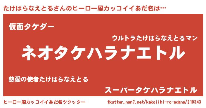 | 欧米人風あだ名 | 『たけはらなえとる・ステッグマイヤー』 |