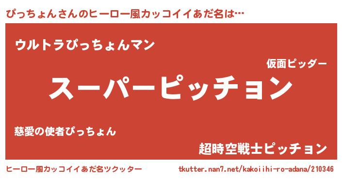 | ファンタジー風あだ名 | 『ピッフェル』『エターナルピッチョンー』 |