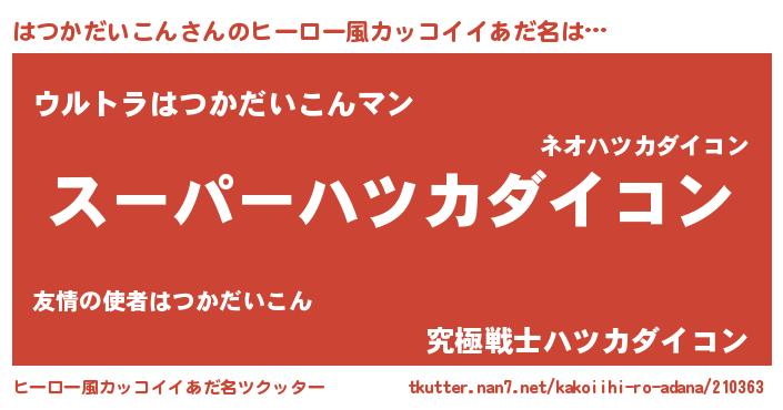| 胡散臭い通販商品みたいなあだ名 | 『必ず成功するブレスレット…その名も「はつかだいこん」』 |
