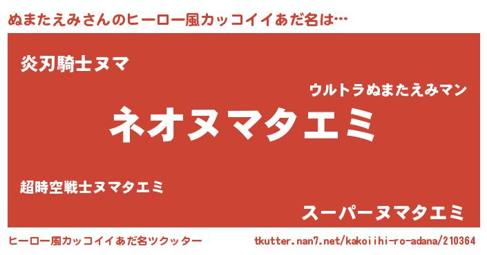 | 意味不明あだ名 | 『永久保存ぬまたえみ』 |