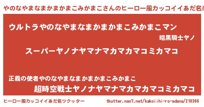 | 胡散臭い通販商品みたいなあだ名 | 『億万長者になれるブレスレット…その名も「やのなやまなまかまかまこみかまこ」』 |