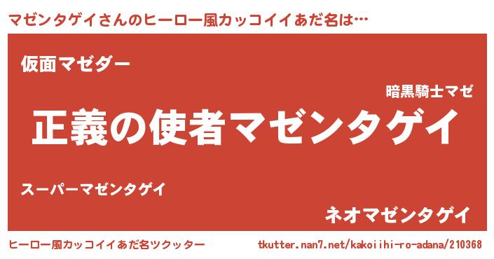 | ヘコむあだ名 | 『マゼンタゲイ(遠い目)』『マゼっちょ』 |