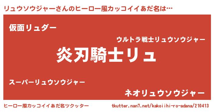 | 欧米人風あだ名 | 『ウサインリュウソウジャー』 |