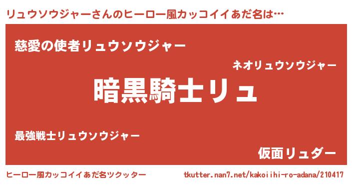 | 胡散臭い通販商品みたいなあだ名 | 『信頼と実績のサプリメント…その名も「リュウソウジャー」』 |