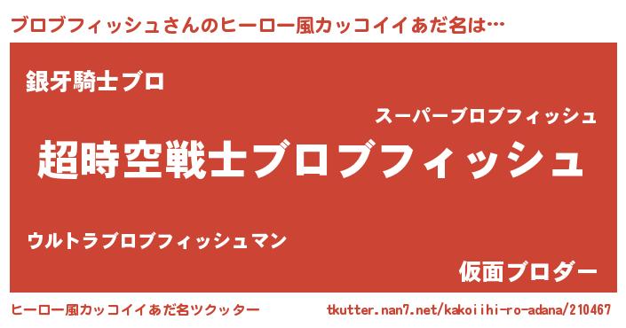 | 男性向けラノベタイトル風あだ名 | 『ブロブフィッシュスレイヤー』 |