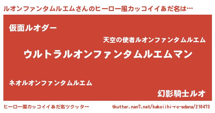 | 欧米人風あだ名 | 『ルオンファンタムルエムクリステル』 |