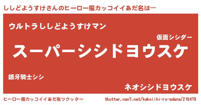 | 胡散臭い通販商品みたいなあだ名 | 『必ず成功するブレスレット…その名も「ししどようすけ」』 |