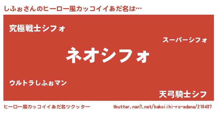 | ヘコむあだ名 | 『しふぉ(小並感)』『しふを』『牛乳』 |