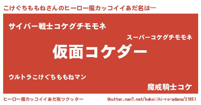 | 意味不明あだ名 | 『住所不定無職こけぐちももね(6歳)』 |
