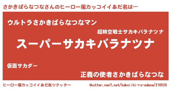 | 男性向けラノベタイトル風あだ名 | 『サカキバラナツナスレイヤー』 |