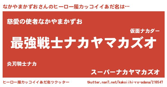 | 男性向けラノベタイトル風あだ名 | 『Re:なかやまかずおから始める異世界生活』 |
