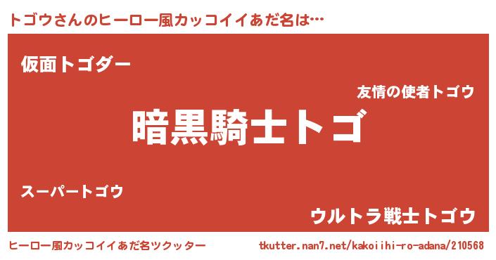 トゴウさんのヒーロー風カッコイイあだ名をツクッター!