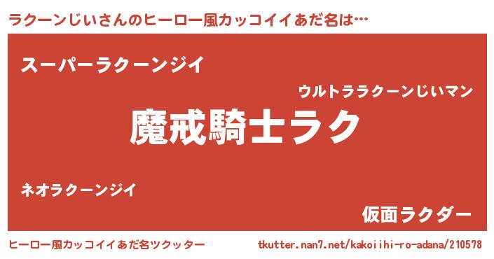 | 男性向けラノベタイトル風あだ名 | 『ダンジョンにラクーンじいを求めるのは間違っているだろうか』 |