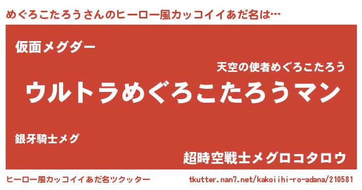 | ファンタジー風あだ名 | 『エターナルメグロコタロウー』 |