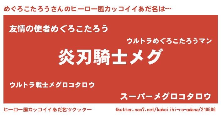 | 男性向けラノベタイトル風あだ名 | 『めぐろこたろうの嫁は女の子じゃないと思った?』 |