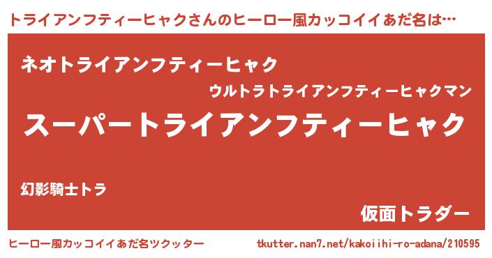 | 胡散臭い通販商品みたいなあだ名 | 『モテモテ間違いなし水晶球…その名も「トライアンフティーヒャク」』 |