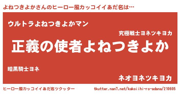 | 男性向けラノベタイトル風あだ名 | 『おまえをオタクにしてやるから、俺をよねつきよかにしてくれ! 』 |